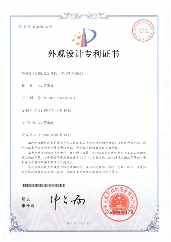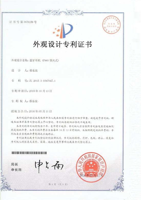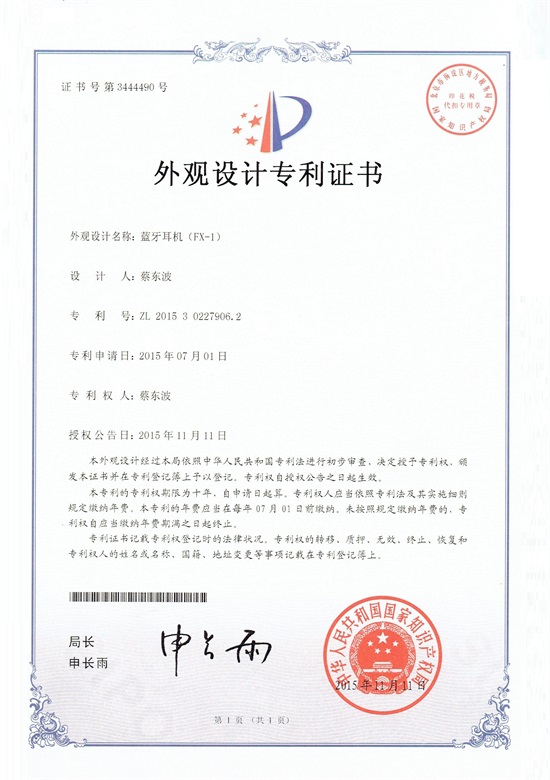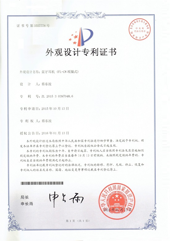 我厂拥有数十个产品专利并厉行通过 CE、ROHS、FCC等一系列国际、国内品质保证体系和产品安全认证。